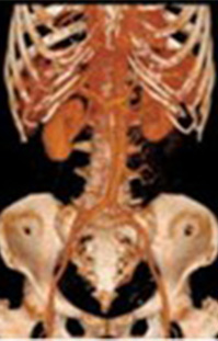 体の周囲360度からX線を照射し、体内を透過したX線量を解析し、画像にします。輪切りの画像だけでなく任意の断面の画像を作成でき、血管や骨などを立体的(3D)に表示することができます。 撮影時間を短縮、広範囲を撮影でき、息止めがある検査でも数秒と負担なく検査を受けられます。また体の大きさ、形に合わせてX線の量が自動で調整されるため被ばくを低減することができます。